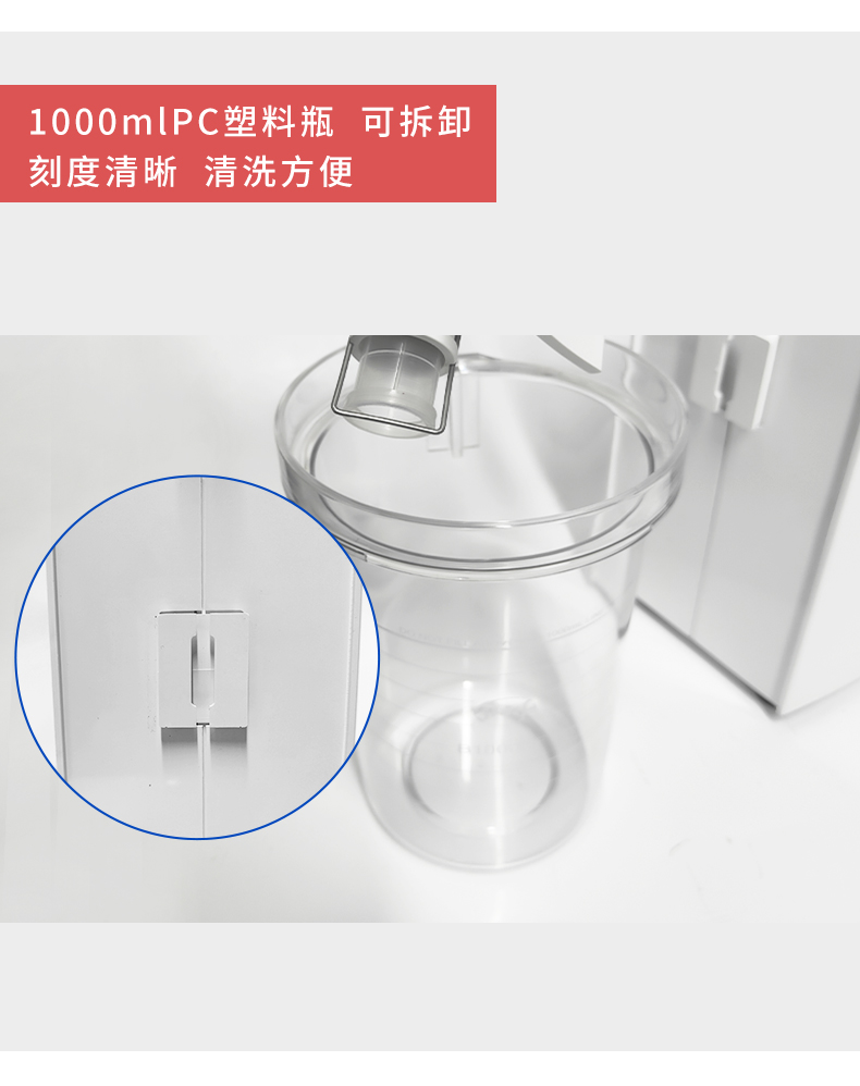 - 贮液瓶采用透明硬质塑料,便于拆卸、清洗和携带。