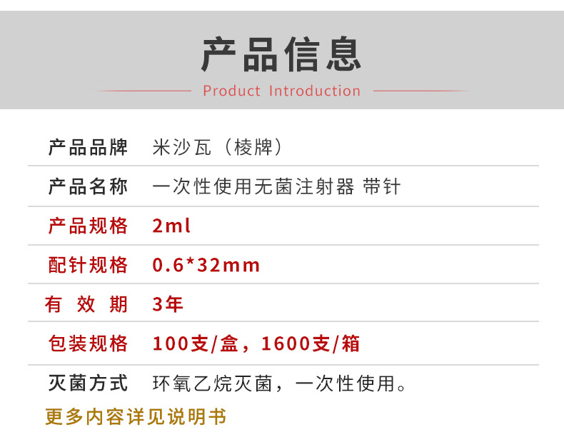 米沙瓦注射器 2ml带针 0.6*32mm 产品介绍: