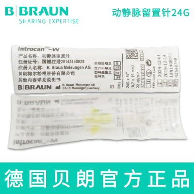 留置针  |  德国贝朗留置针  |  贝朗医疗留置针  |  动静脉留置针  |  德国贝朗  |  动静脉留置针  |  24G  |  Introcan-W  |  英初康  |  带翼  |  直型密闭式  |  针头:0.7×19mm  |  黄色  |  贝朗留置针  |  留置针价格  |