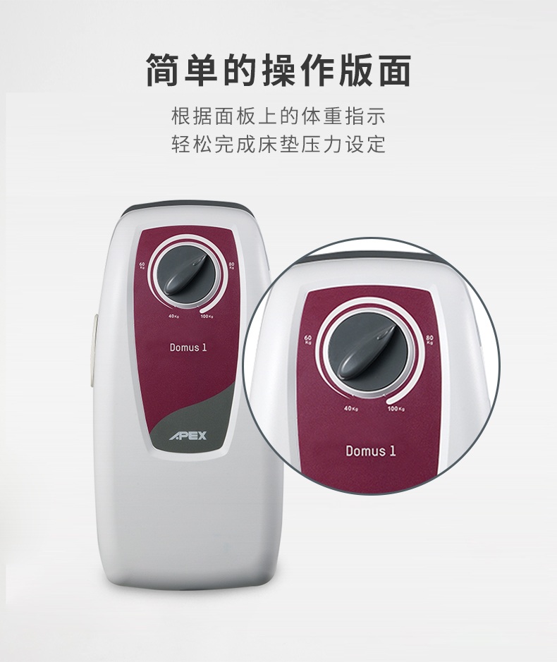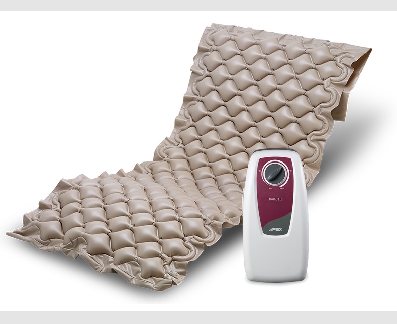 - Domus 1为入门款动态压力传导系统。 由医疗级PVC制成,共有130颗气囊组成,交替时间约10钟。由气囊的充泄气来改变表面压力,因此可以达成压力的重新分布。 此产品适用于低风险压疮病患,且在防止压疮形成上,是相当经济的选择。