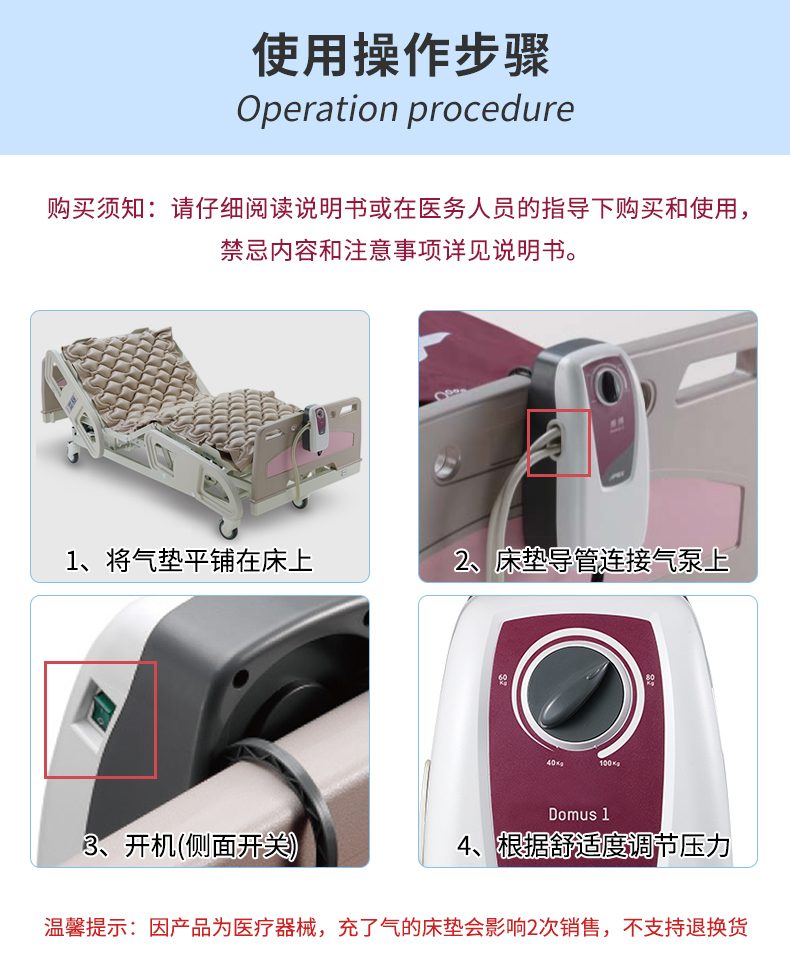 雅博 防褥疮气垫 DOMUS 1 产品注意事项: