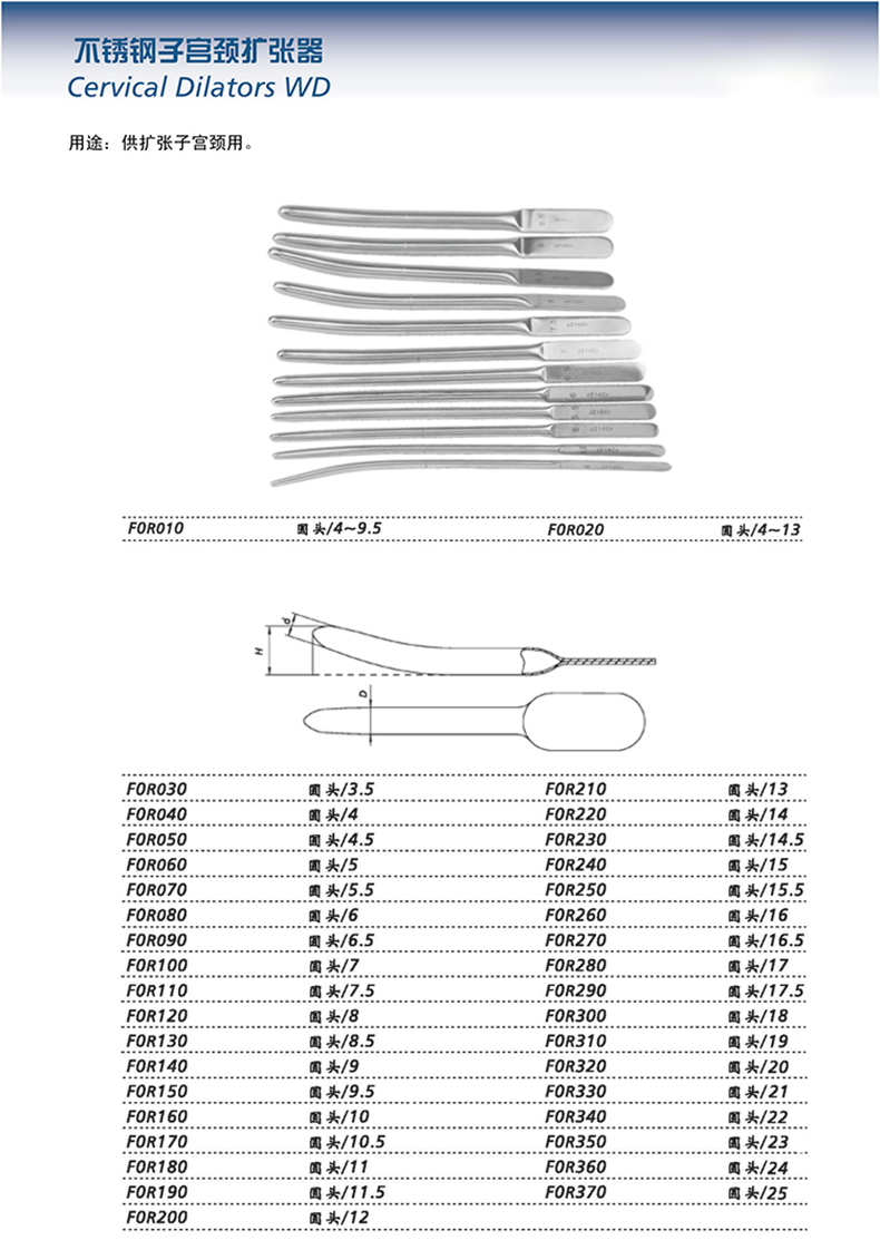 金钟子宫颈扩张器F0R010圆头4~9.5