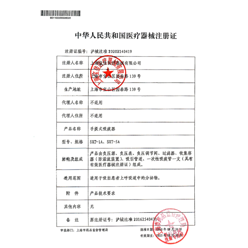 | 吸痰器 | 手提式 | SXT-1A | 成人吸痰器 |
