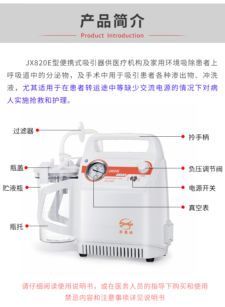 上海斯曼峰 便携式吸引器 JX820E(铅酸电池) 产品简介: