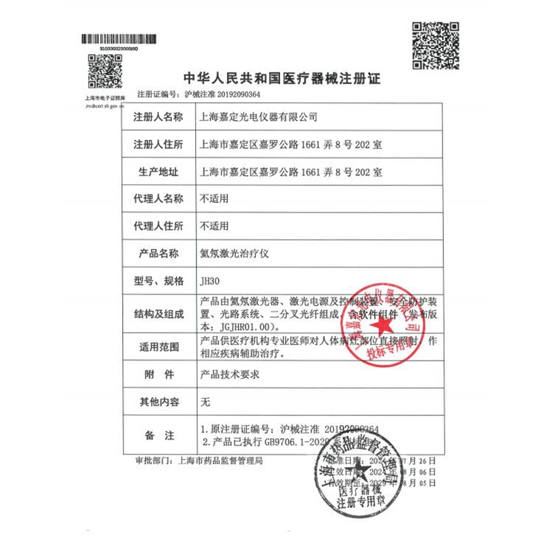 嘉光 氦氖激光治疗仪 JH30 (智能型) 目前认证: