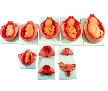 本模型10件为一套,示胎儿十月妊娠发育过程与子宫的关系。