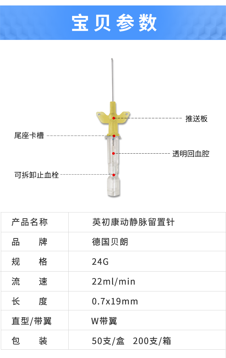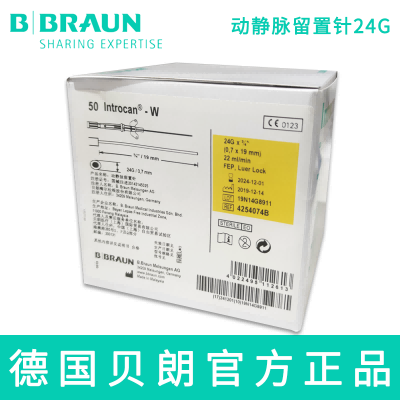 留置针  |  德国贝朗留置针  |  贝朗医疗留置针  |  动静脉留置针  |  德国贝朗  |  动静脉留置针  |  24G  |  Introcan-W  |  英初康  |  带翼  |  直型密闭式  |  针头:0.7×19mm  |  黄色  |  贝朗留置针  |  留置针价格  |