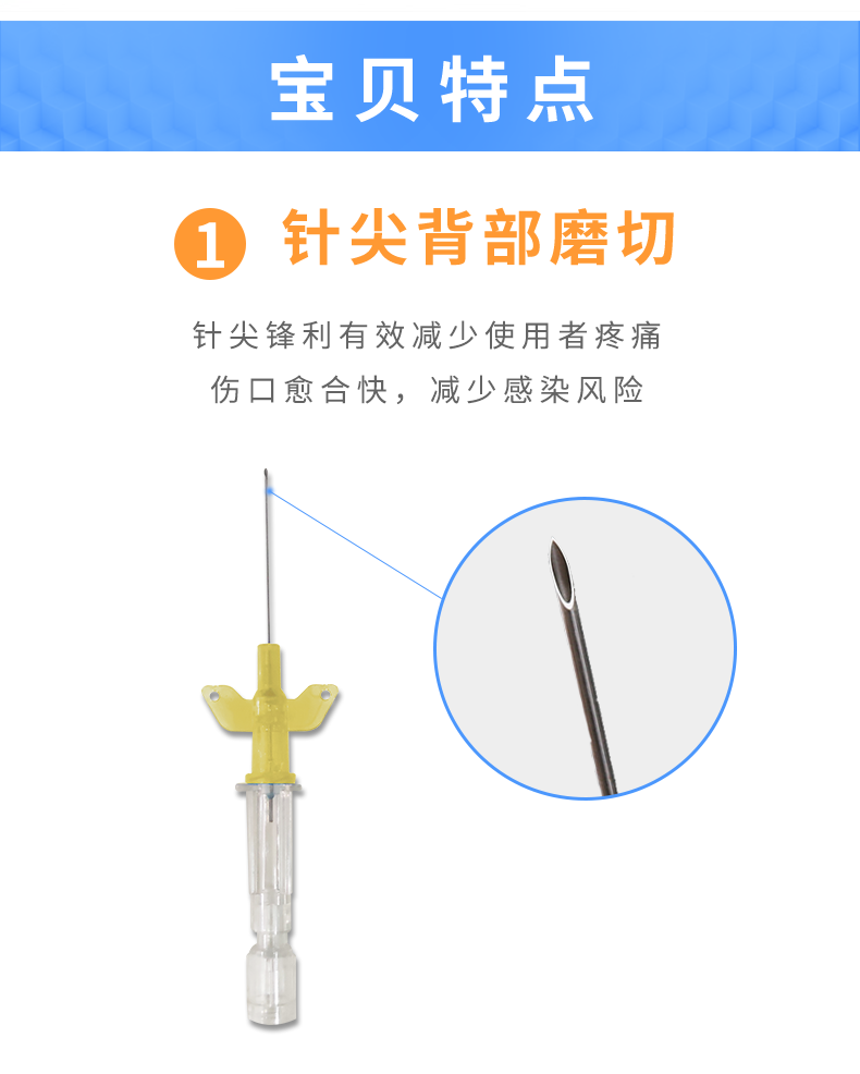 3. 德国贝朗静脉留置针针头材料选用德国钢材,针头打磨为7刀打磨,获得国际认证。(普通针为4刀)