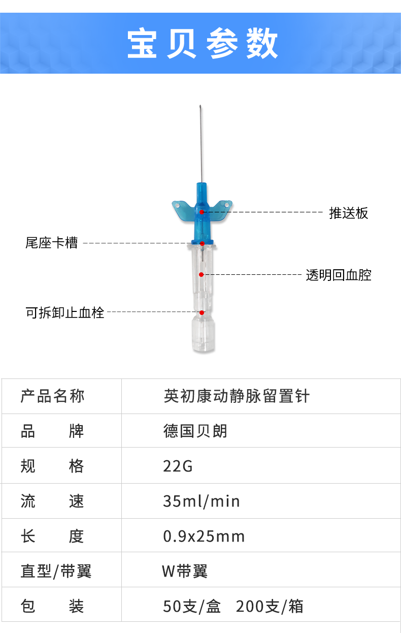 • 产品规格:22G 针头0.9×25mm 蓝色 货号4254090B