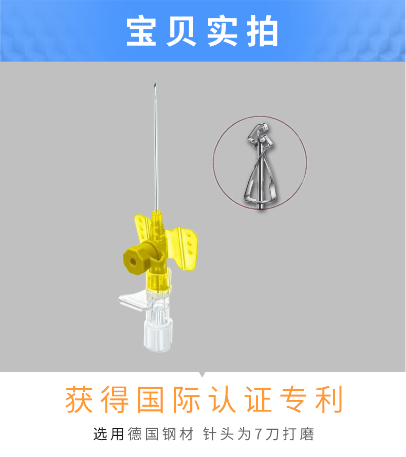• 德国贝朗静脉留置针针头材料选用德国钢材,针头打磨为7刀打磨,获得国际认证。(普通针为4刀)