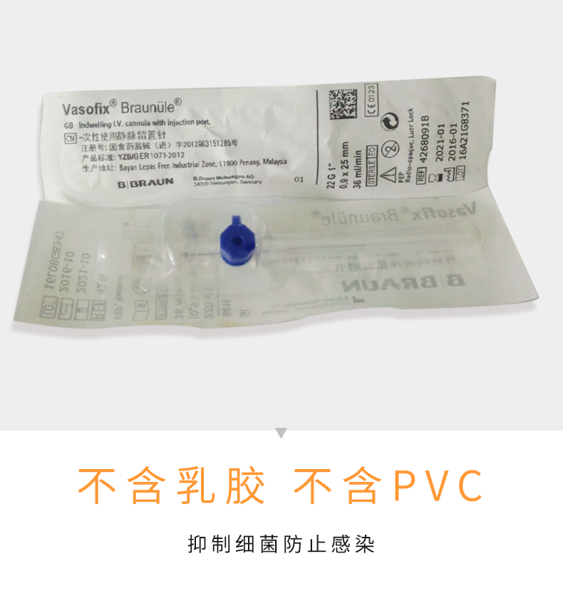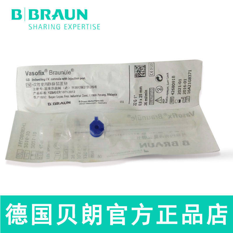 德国贝朗静脉留置针Vasofix沃素菲 加药壶22G 针头0.9*25mm 蓝色 货号4268091B