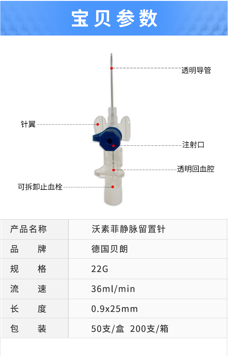 • 产品规格:22G 针头0.9*25mm 蓝色 货号4268091B