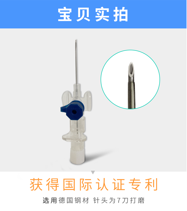 •  德国贝朗静脉安全性留置针针头材料选用德国钢材,针头打磨为7刀打磨。(普通针为4刀)