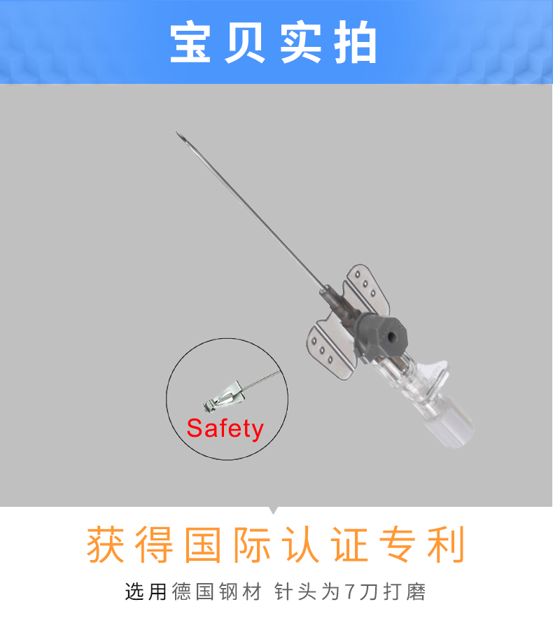 • 德国贝朗静脉留置针针头材料选用德国钢材,针头打磨为7刀打磨,获得国际认证。(普通针为4刀)