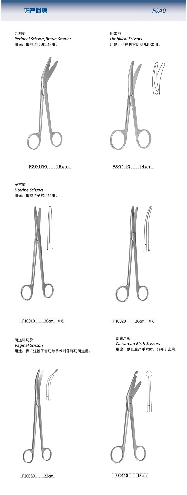 “上海金钟牌” F0B0 妇产科剪 产品表