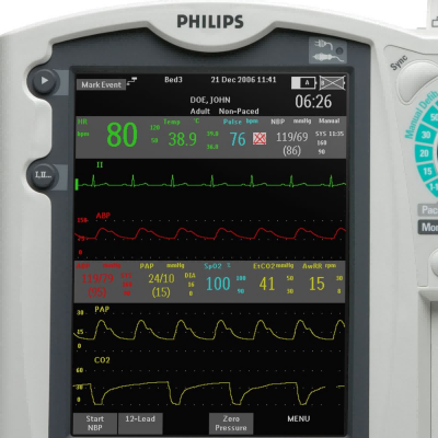 飞利浦 HeartStart MRx 监护除颤器作为高端网络传输监护除颤器,整合了很多与飞利浦早期床旁监护仪相同的算法,病人信息连接和配置选择。