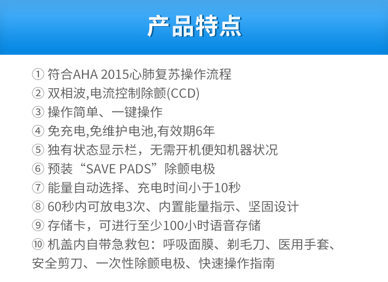 - 分析时间:最长 7 秒可识别心室纤维性颤动