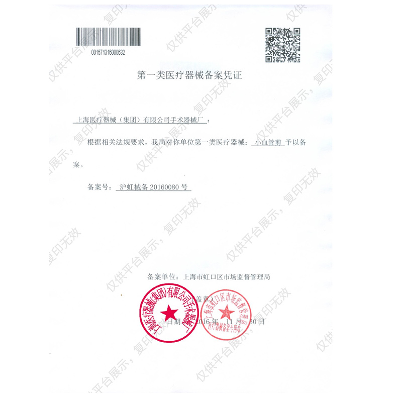 本公司专业经销金钟小血管剪,批发兼零售金钟小血管剪弯尖,在全国医疗单位中享有较高的知名度。公司立足上海,服务全国,信誉第一。 经销品种包括医用电子仪器、精密医疗设备、一次性医疗用品、各类专科器械、实验仪器设备、齿科设备、医用消耗器材、进口医疗器械、家用医疗器械、家用护理保健产品等。欢迎各地客户预约定货。全国免费电话:021-51601230