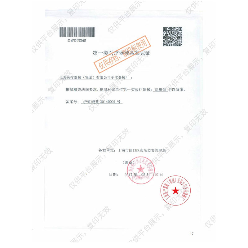 本公司专业经销金钟组织钳,批发兼零售金钟组织钳普通,在全国医疗单位中享有较高的知名度。公司立足上海,服务全国,信誉第一。 经销品种包括医用电子仪器、精密医疗设备、一次性医疗用品、各类专科器械、实验仪器设备、齿科设备、医用消耗器材、进口医疗器械、家用医疗器械、家用护理保健产品等。欢迎各地客户预约定货。全国免费电话:021-51601230