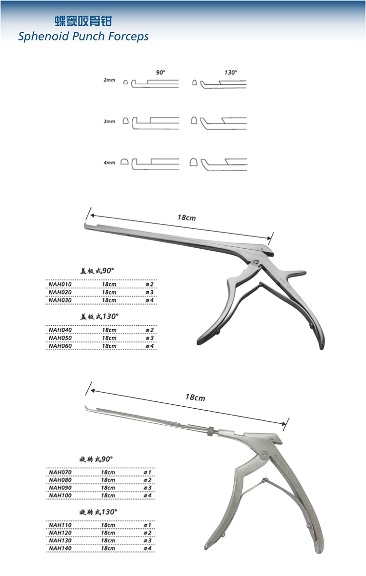 金钟蝶窦咬骨钳旋转式NAH100 18cm 旋转式 90° 刃宽4