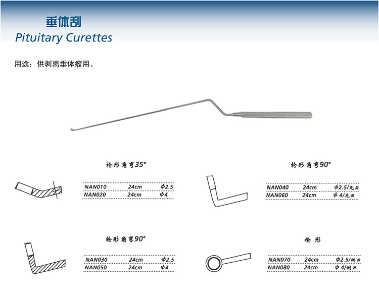 金钟刮匙枪形NAN040 24cm 枪形 弯90° 无刃2.5