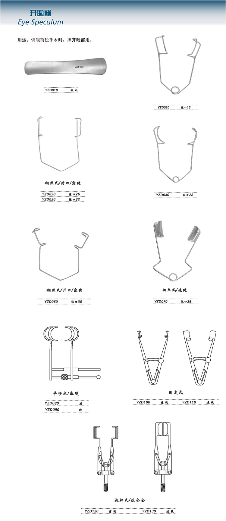 金钟开睑器 YZD120 固定V式 露睫(钛)