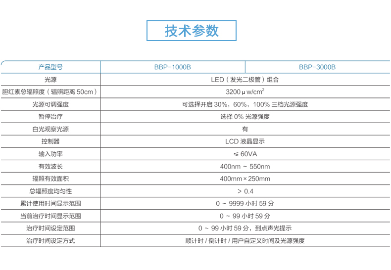 ●具有当前使用时间和累计使用时间的计时功能,准确记录婴儿治疗时间和光源累计使用时间;
