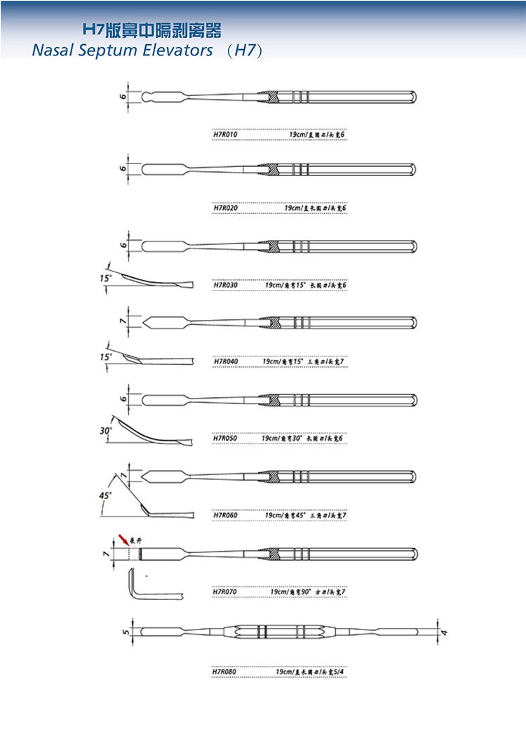 金钟鼻中隔剥离器角弯H7R050 19cm 角弯30° 长圆刃 头宽6