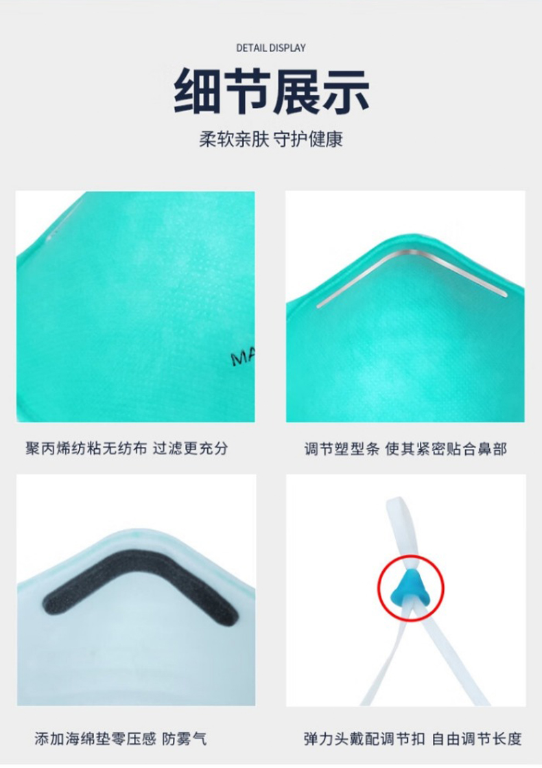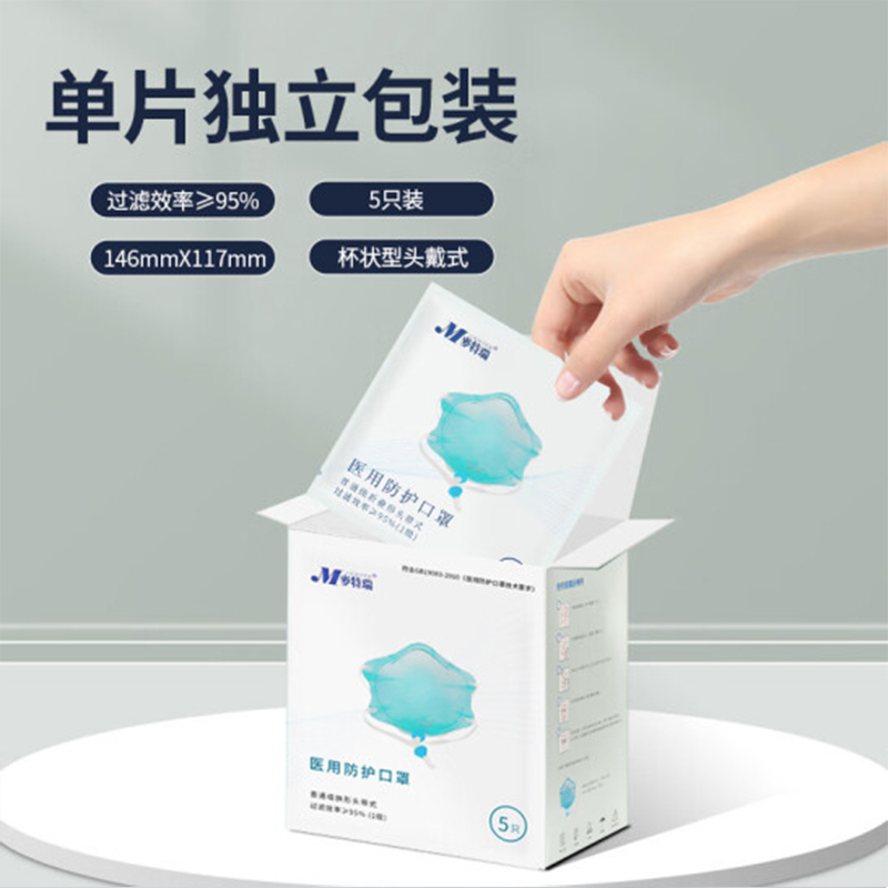 梦特瑞医用防护口罩普通级拱形头戴式口罩146mm×117mm-5p-绿色