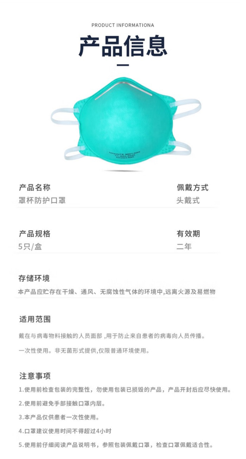 请联系我们 >>购买梦特瑞医用防护口罩普通级拱形头戴式口罩