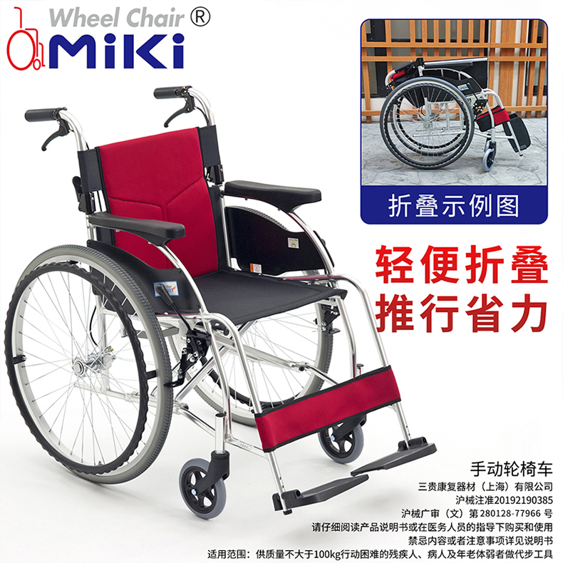 MIKI三贵手动轮椅车MCS-47KJLW1红色 精品系列
