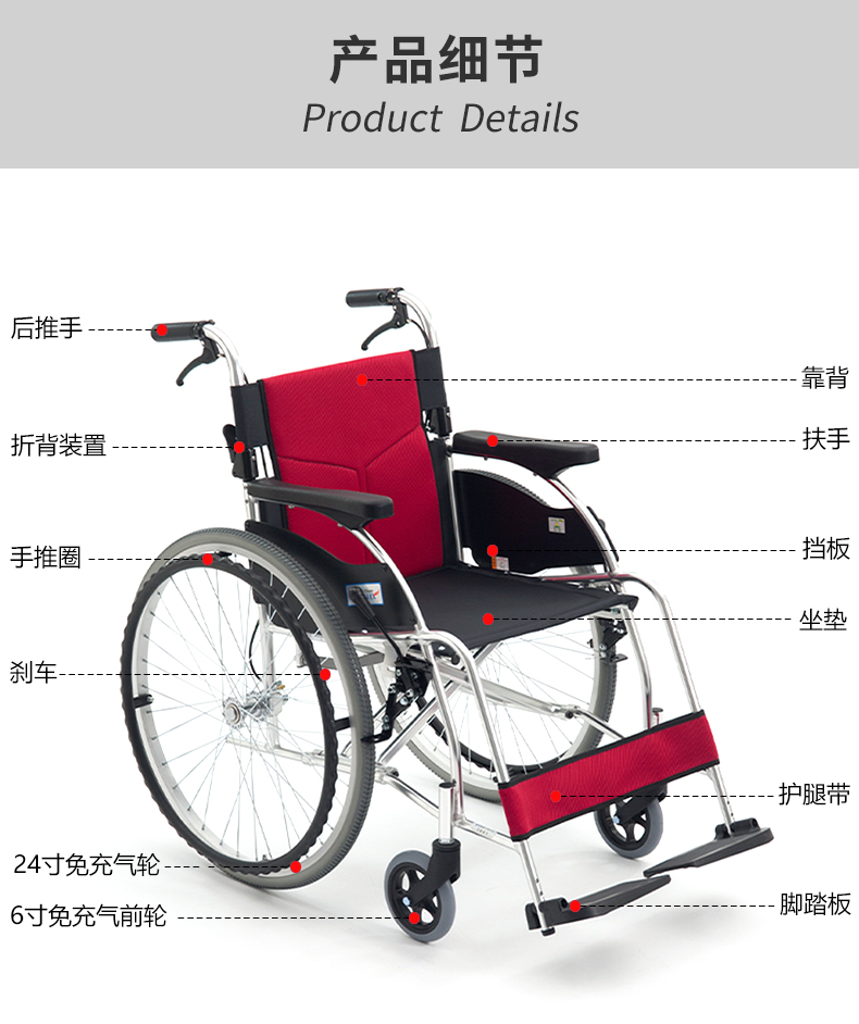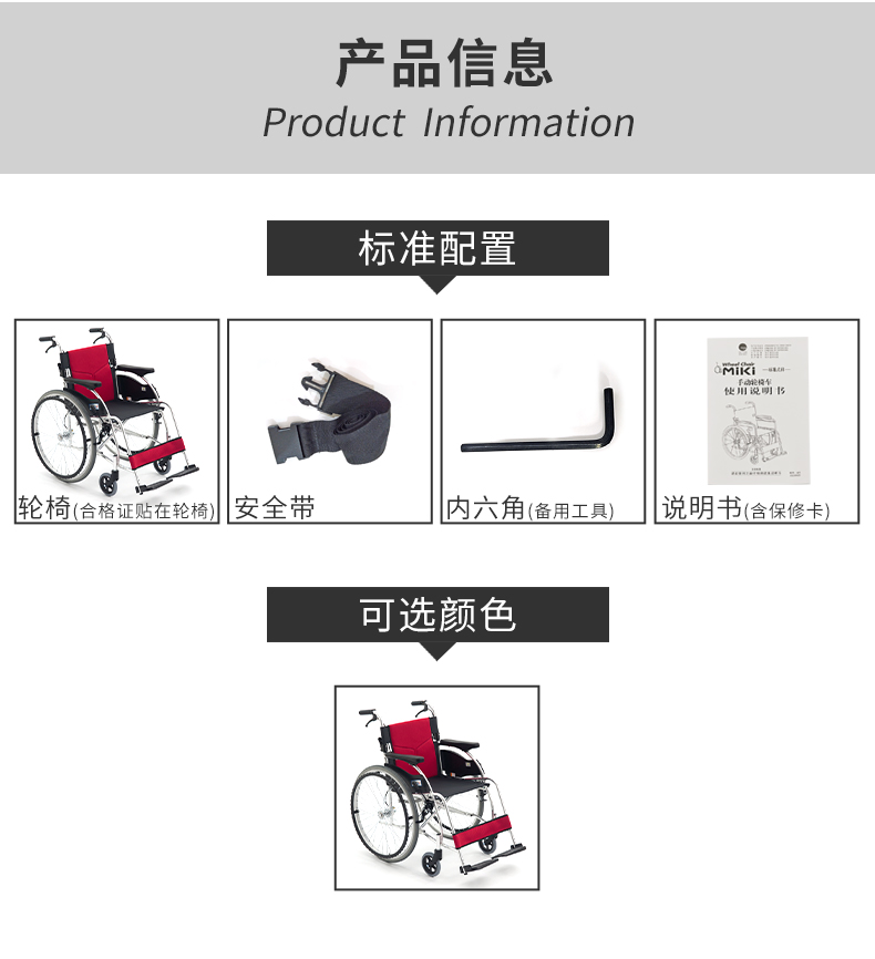 MIKI三贵 手动轮椅车MCS-47KJL 产品特点: