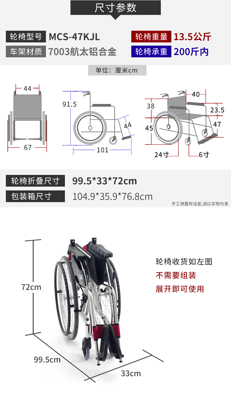 MIKI三贵 手动轮椅车MCS-47KJL 产品参数: