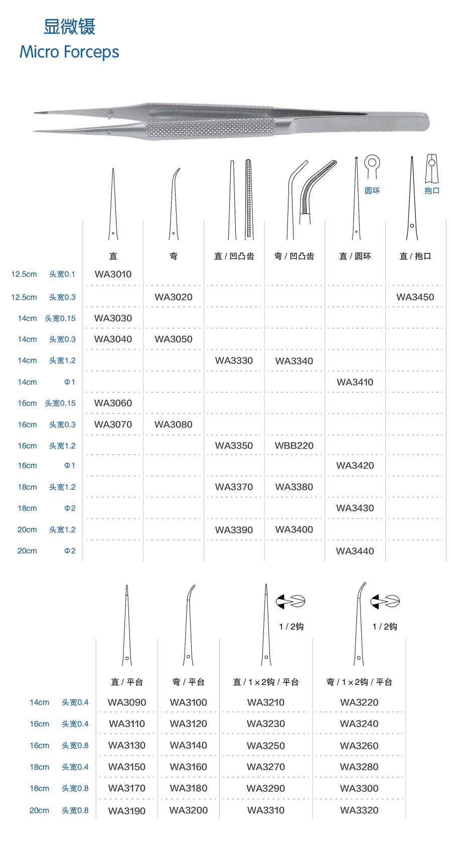 金钟显微镊直WA3060 16cm 直 头宽0.15