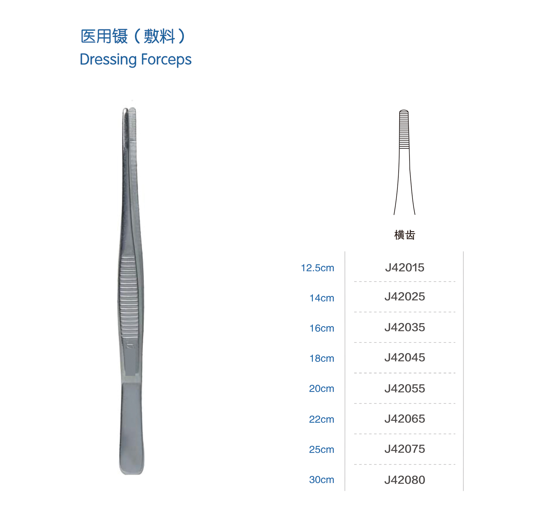 上海金钟 医用镊 J42015 12.5cm横齿(敷料)