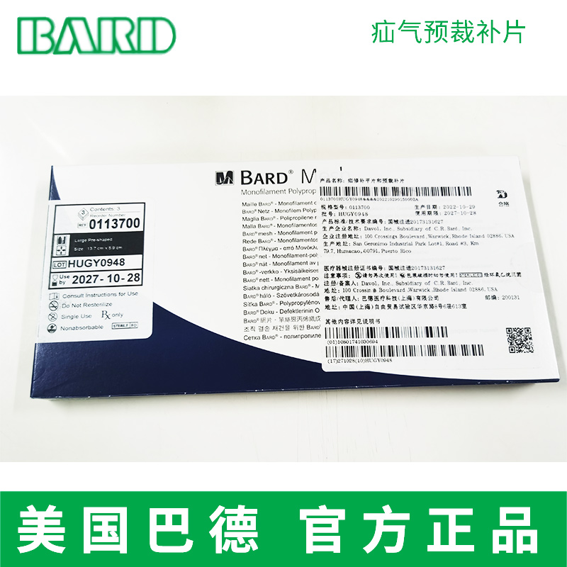 本公司专业经销巴德疝气预裁补片,批发兼零售巴德疝气预裁补片0113700,在全国医疗单位中享有较高的知名度。公司立足上海,服务全国,信誉第一。 经销品种包括医用电子仪器、精密医疗设备、一次性医疗用品、各类专科器械、实验仪器设备、齿科设备、医用消耗器材、进口医疗器械、家用医疗器械、家用护理保健产品等。欢迎各地客户预约定货。全国免费电话:021-51601230