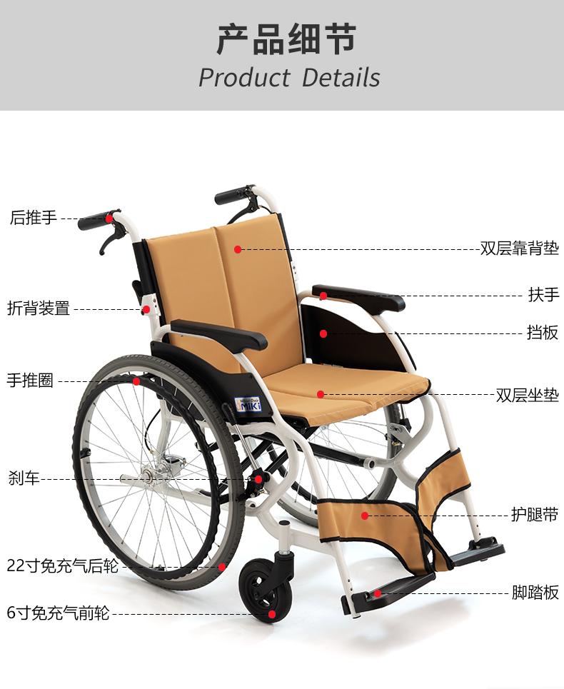 MIKI三贵 手动轮椅车CK-1 产品特点: