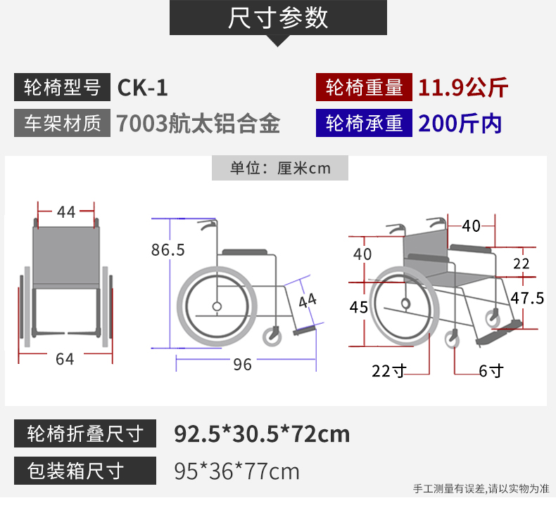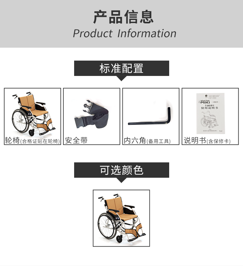 MIKI三贵 手动轮椅车CK-1 产品参数: