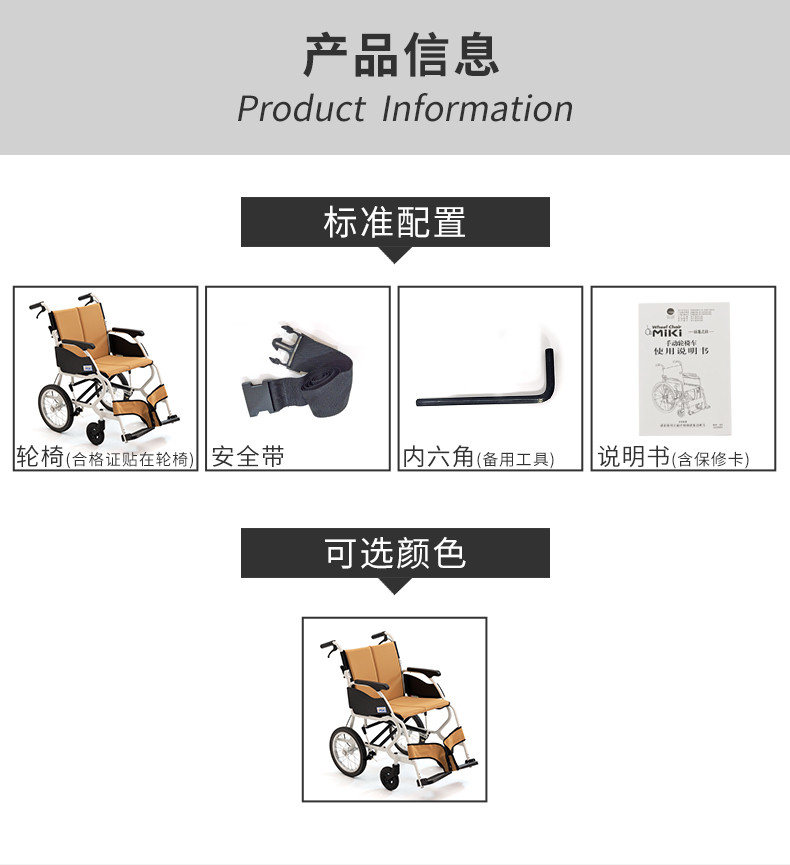 MIKI三贵 手动轮椅车CK-2 保修服务: