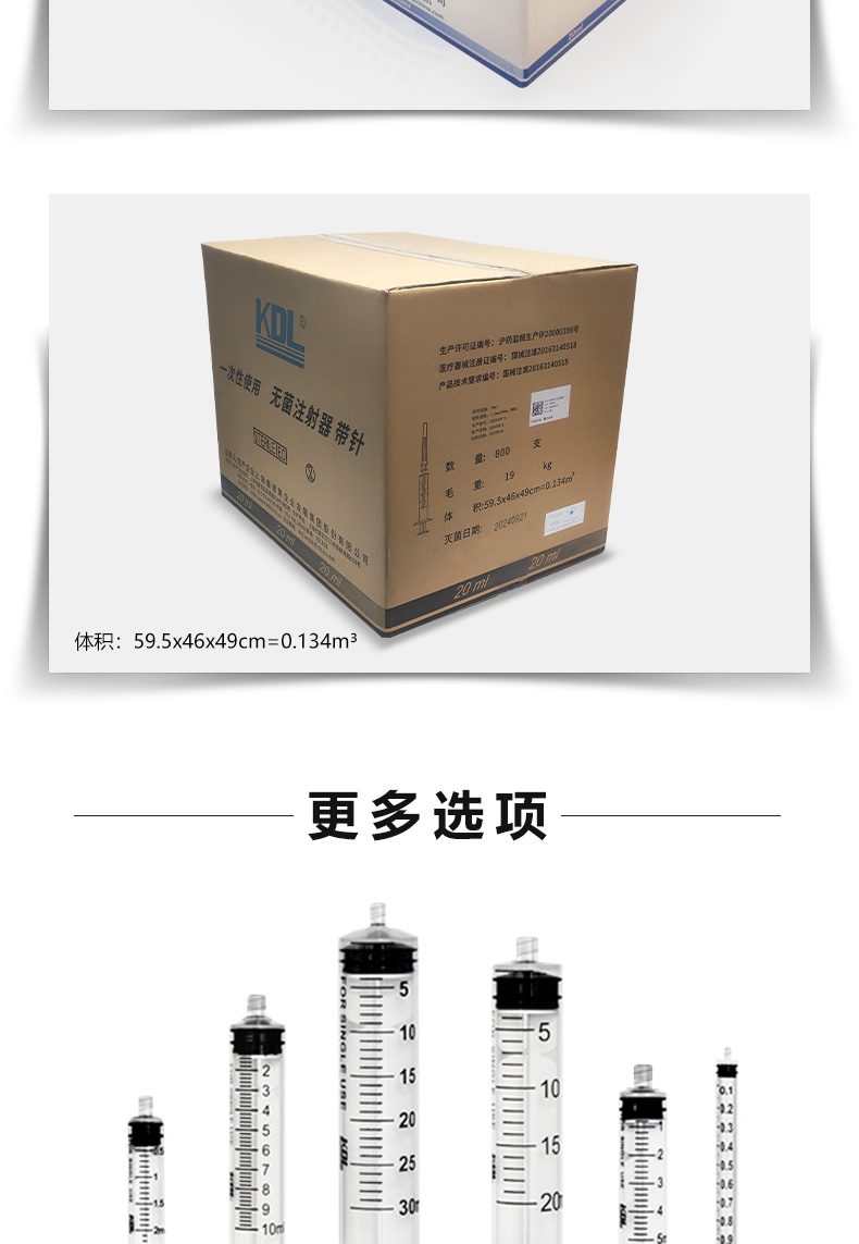 康德莱 一次性使用无菌注射器 20ml 产品特点:
