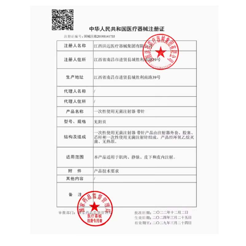 洪达一次性使用无菌注射器订购指南