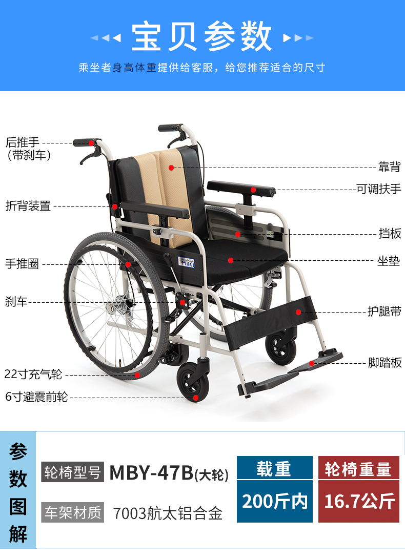 - 轮椅型号:MBY-47B