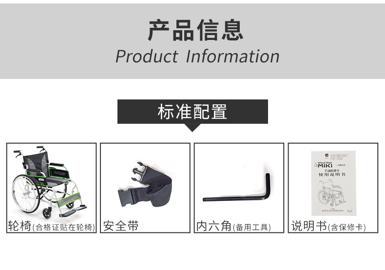 MIKI三贵 手动轮椅车M-43RK 保修服务: